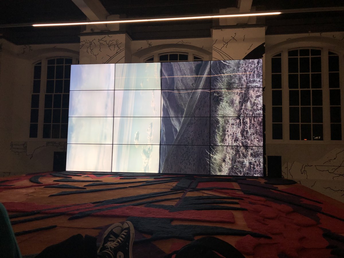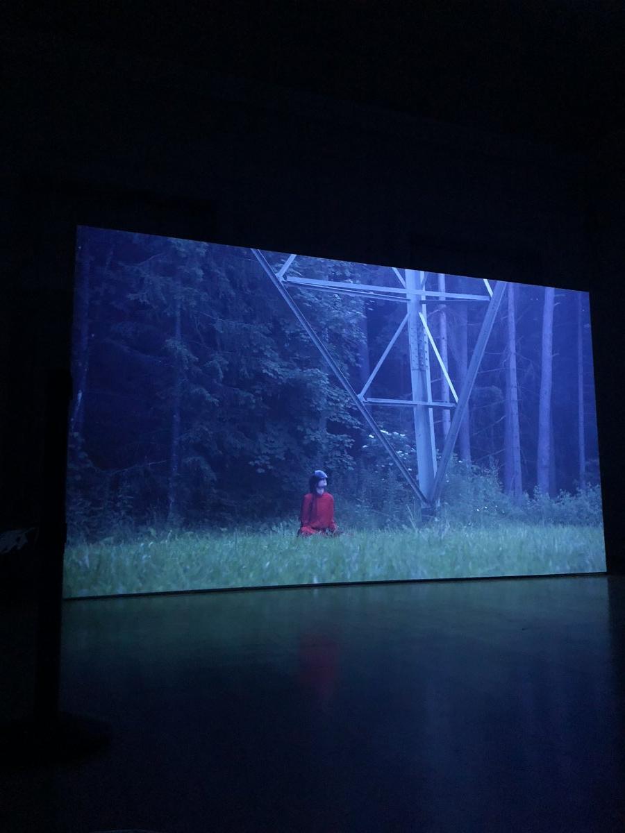 Out of the films that were shown, the one I found most interesting was Information Skies. This is a 24 minutes digital film that show how nature is a force that is consistent even among an increasingly science fictional predicted future. There was a scene that showed one character blindfold the other individual using a silk material ,and I felt that this symbolised the removal of reality and to get rid of the gaze we often give to technology screens. This concept was also exemplified through one of the characters holding up a mirror to conceal their face. Additionally, the film is filled with sharp red,black and white graphics as well as shots of horizons and sombre forest landscapes, and this congrats and overlap of style creates a new way of expressing the post truth world and how humans might come to deal with the forthcoming consequences.