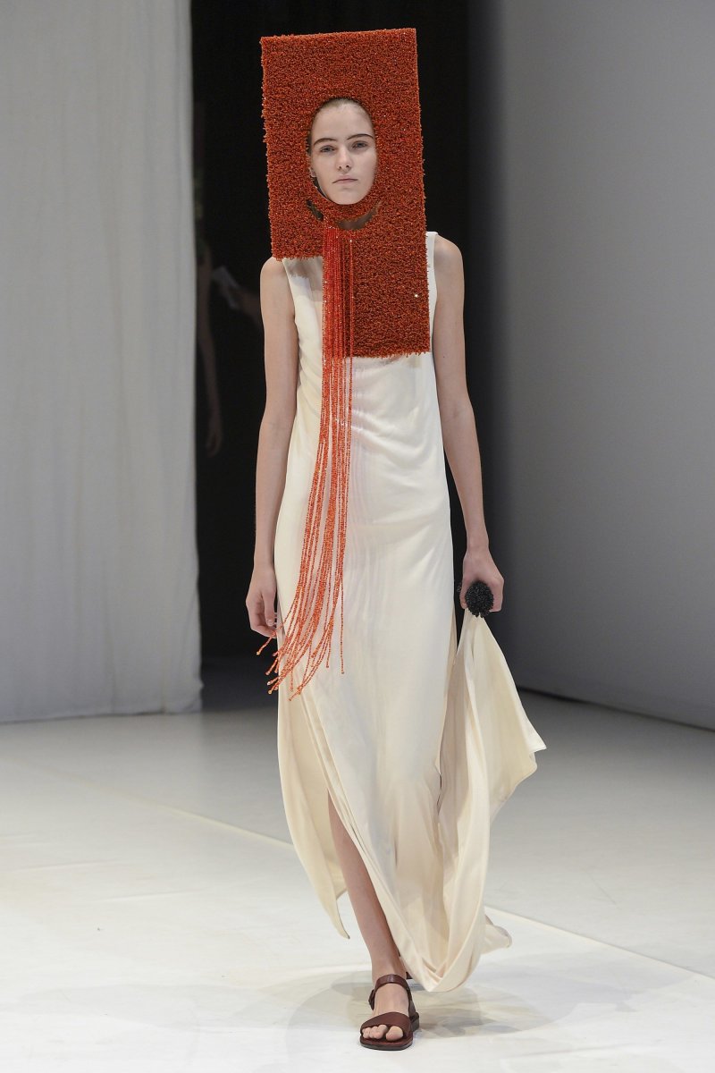 Chalayan also works on the head by creating simple geometrical shapes to encase or to limit the movements. I think this can help my work as I often ignore the head of the Boyd when it comes to styling and I just let the hair be tied up or down. I think concealing the face can show my concept of the diminishing of facial expressions in the near future and this can be expressed though translucent material such as organza or acetate.